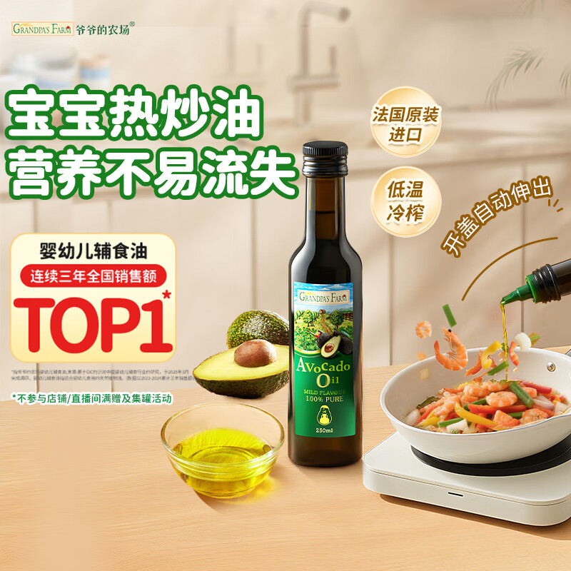 爷爷的农场牛油果油食用油250ml 进口热炒油宝宝辅食油 适用婴幼儿的油