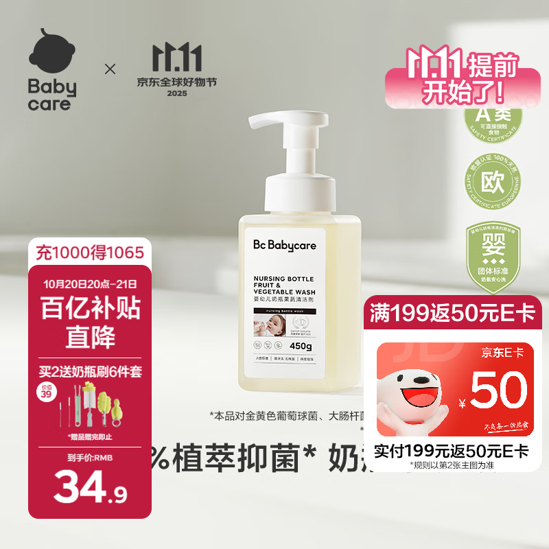 babycare奶瓶清洗剂奶嘴清洁婴儿餐具果蔬清洁剂谷物酵素清洗液 450g/瓶
