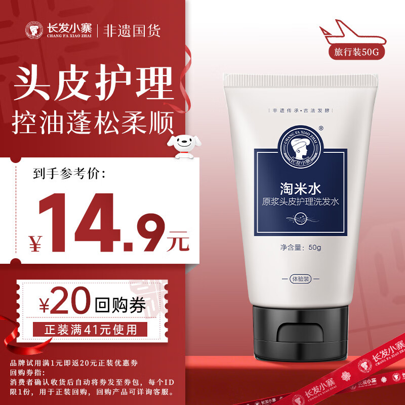 长发小寨淘米水洗发水三益菌净屑洗发露去屑滋养头皮蓬松顺滑旅行装50g