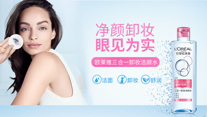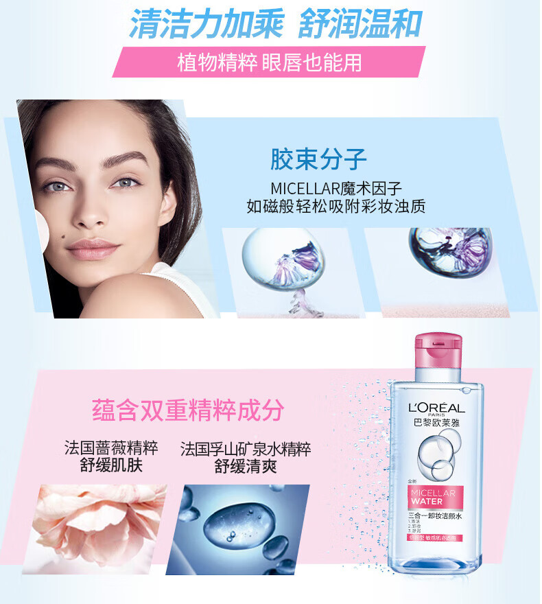 欧莱雅三合一卸妆洁颜水倍润型95ml*3瓶 眼唇脸部温和清洁【临期清仓】
