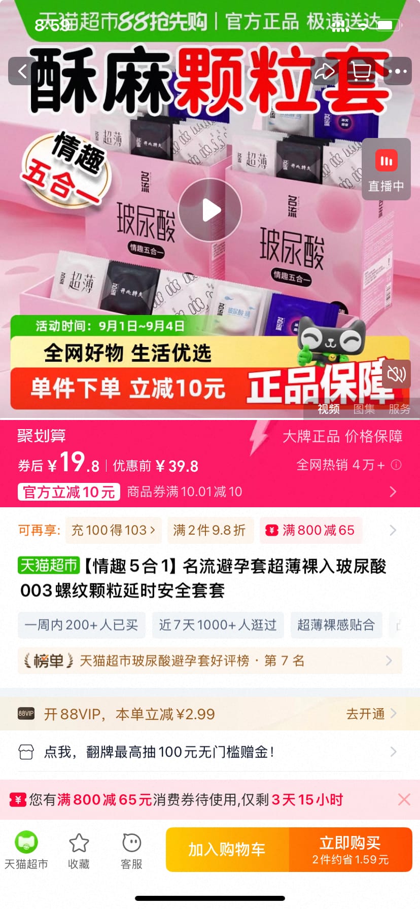 【5合1】名流避孕套超薄裸入玻尿酸003螺纹颗粒延时安全套套