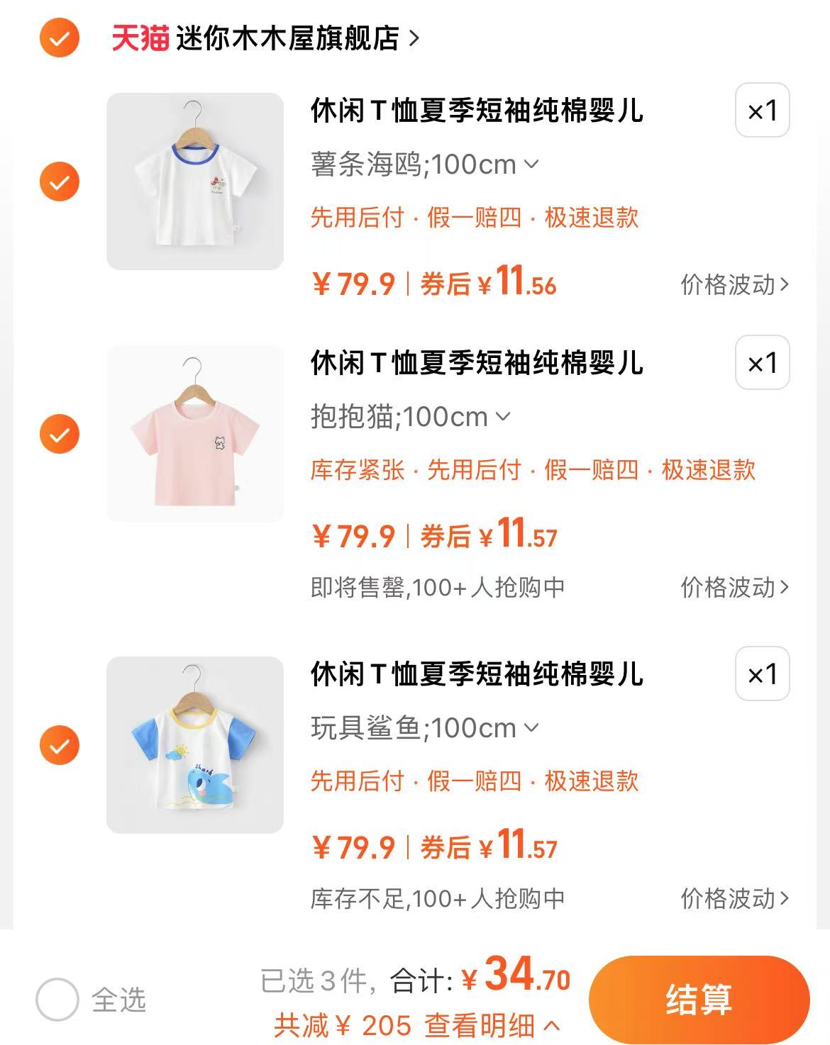 木木屋宝宝短袖T恤夏季薄款衣服,亲肤透气,柔软舒适,萌趣可爱,自由搭配 速度‼大牌短袖11/件 任选3件 到手34.7元 木木屋短袖T恤任选*3件 大牌木木屋,品质放心